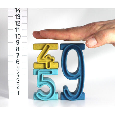 Chiffres à empiler en Re-Woods® coloré 12 x 1 ; 7 x 2 ; 4 x 3 ; 4 x 4 ; 2 x 5 ; 1 x 6 ; 1 x 7 ; 1 x 8 ; 1 x 9 ; 1 x 10. Inclus la règle de contrôle et les instructions.