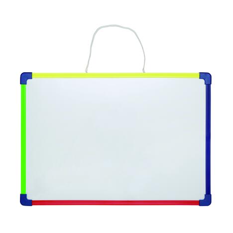 Il possède : 2 faces,1 boucle pour accrocher le tableau, 1 cadre robuste en plastique coloré et 1 surface en tôle d'acier plastifiée. Magnétique.